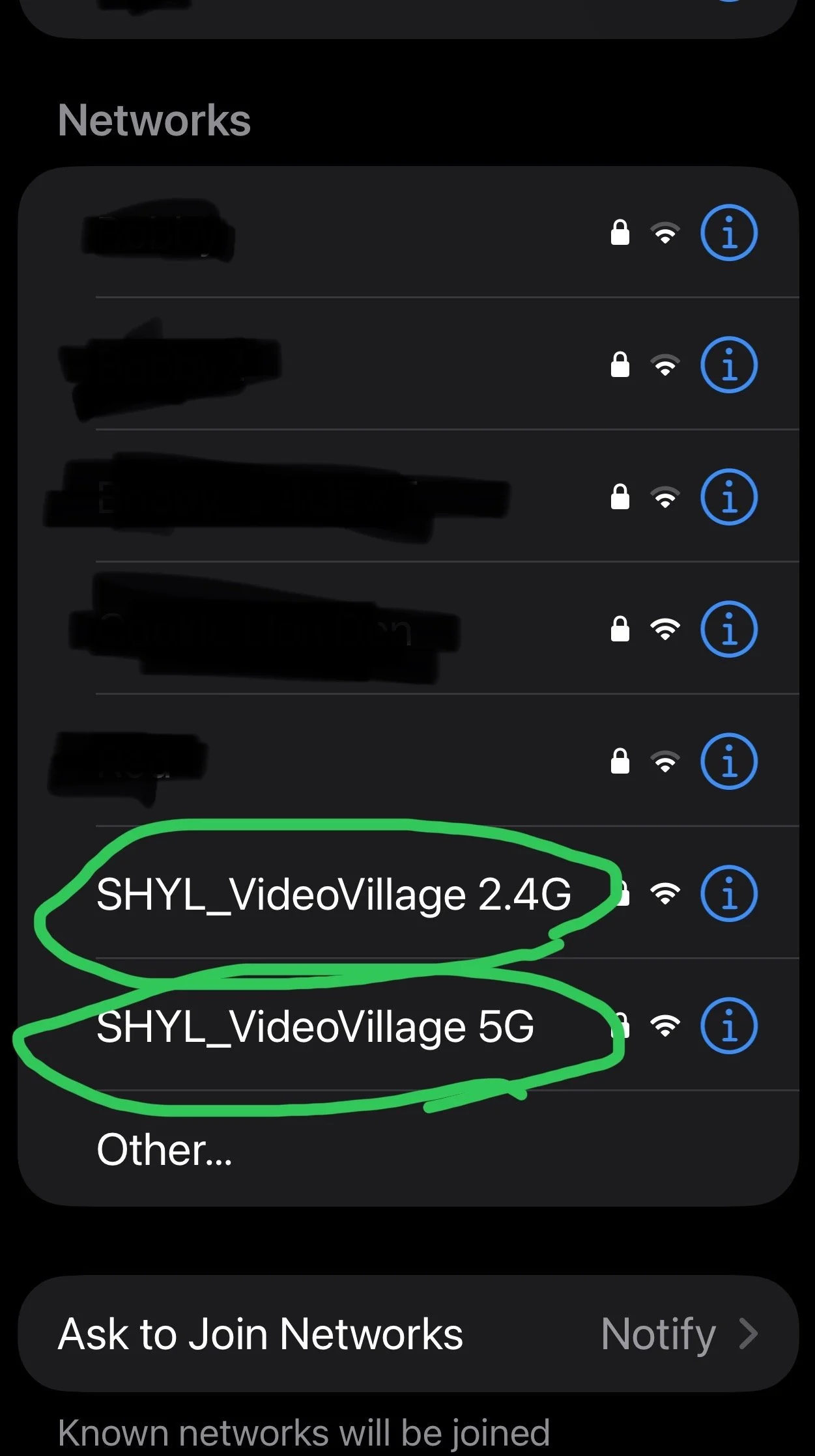 Connect to SHYL_VideoVillage_2.4Ghz (Outdoors) or SHYL_VideoVillage_5Ghz (Indoors) in your WiFi settings. (Password: saythatagain)